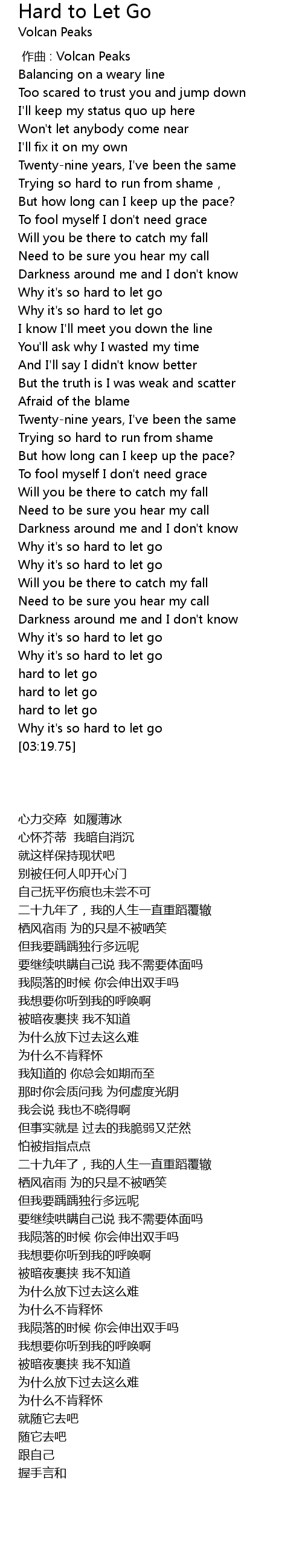 | [03:09.58] | Why it' s so hard to let go |