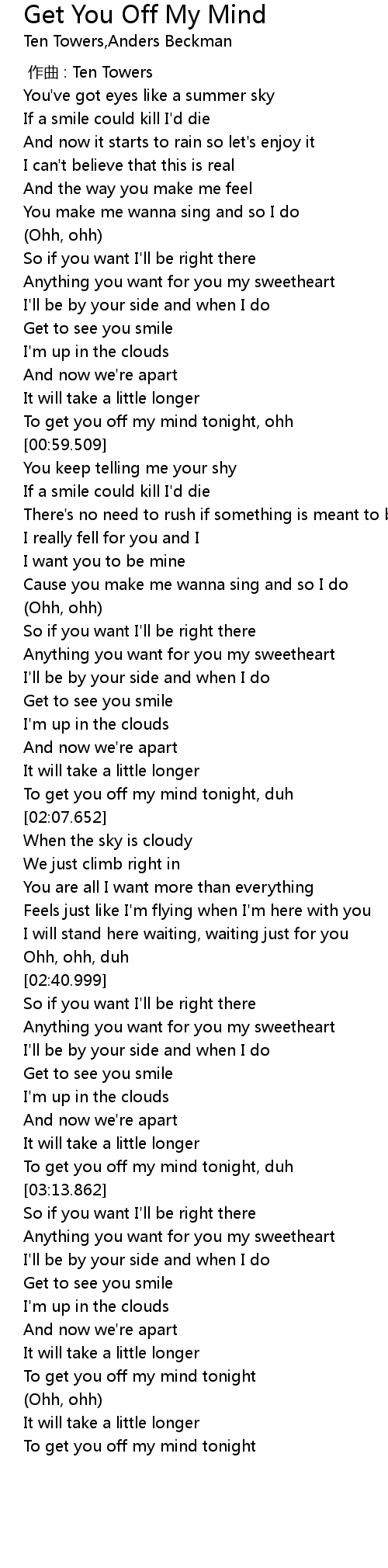 | [00:56.403] | To get you off my mind tonight, ohh |
