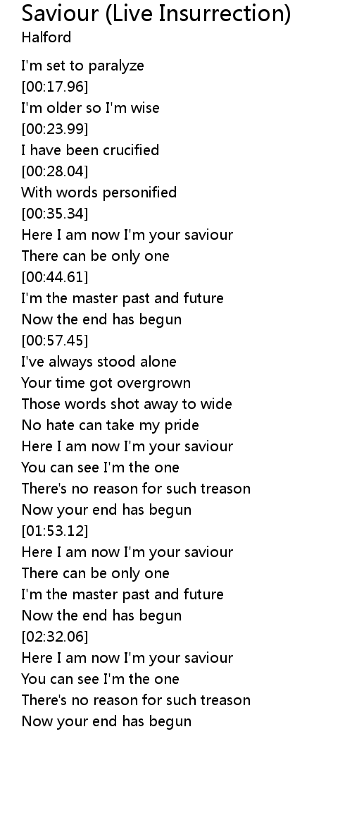 Here I am now I'm your saviour |