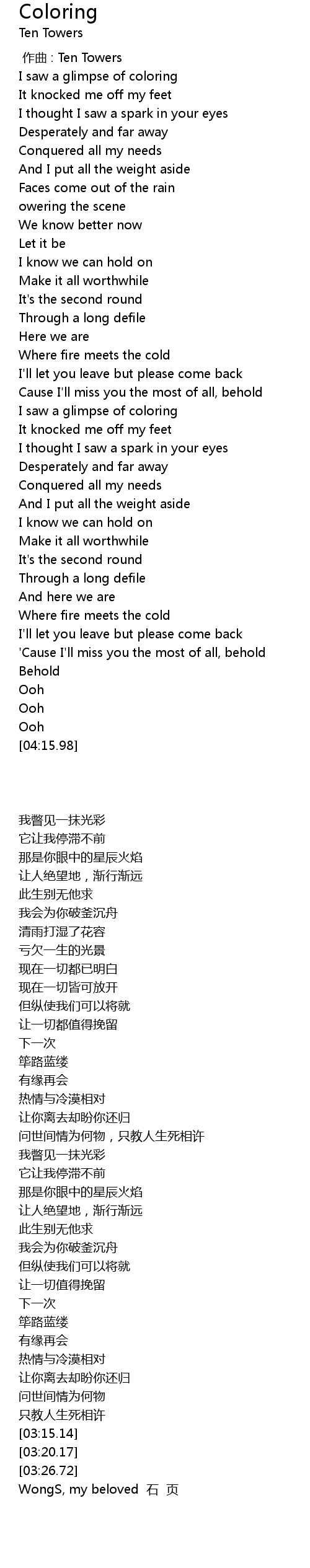 | [00:00.000] | zuò qǔ : Ten Towers |