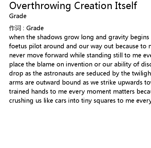 | when the shadows grow long and gravity begins to let you down can the spacebound foetus pilot around and our way out because to me every moment matters you can never move forward while standing still to me every moment matters shall we just place the blame on invention or our ability of discovery the temperature will drop as the astronauts are seduced by the twilights' motherly appeal and deaths arms are outward bound as we strike upwards towards the stars into this god' s trained hands to me every moment matters because death' s arms are outward bound crushing us like cars into tiny squares to me every moment matters |