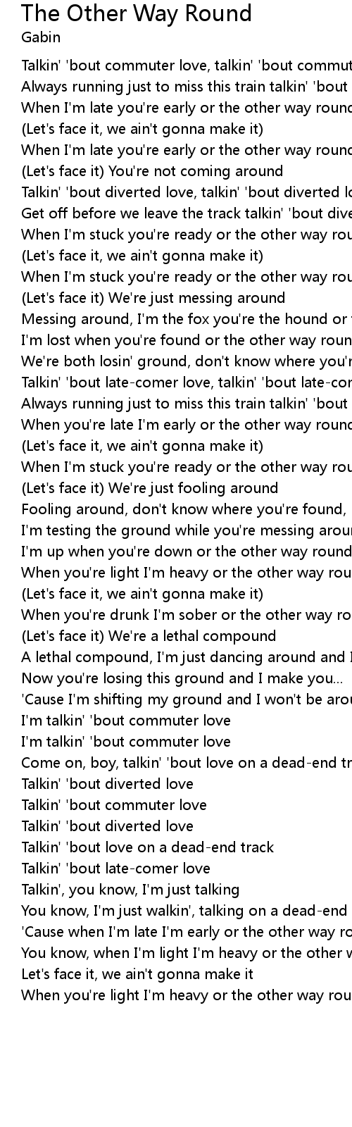'Cause when I'm late I'm early or the other way round, now |