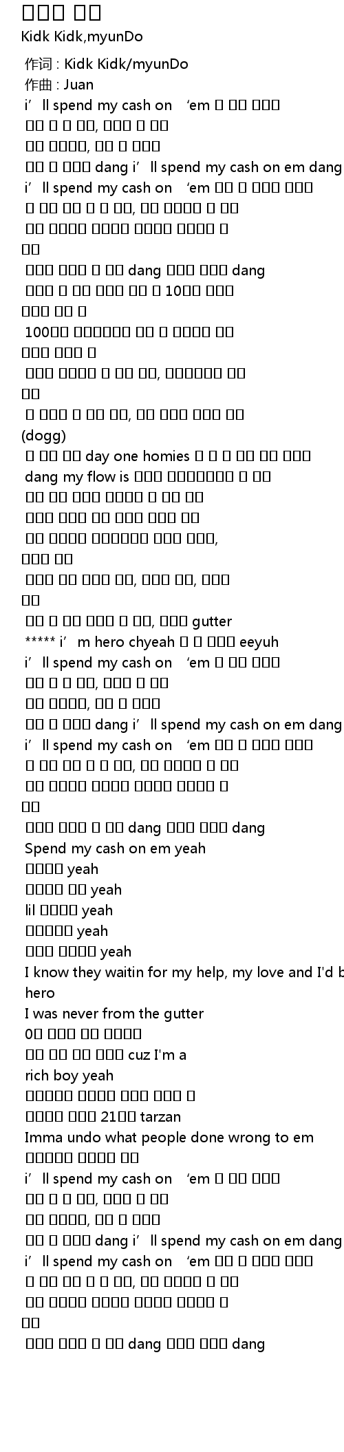 | [01:22.070] | 구해 난 세상을 dang i’ll spend my cash on em dang |