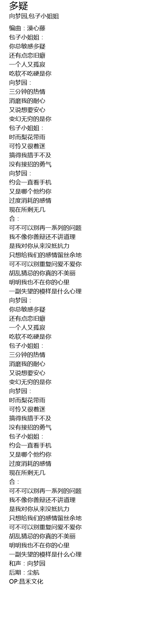 | [00:20.02] | nǐ zǒng mǐn gǎn duō yí |