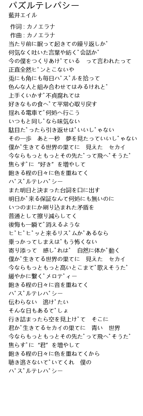 | [03:40.247] | 君が生きてるセカイの果てに 青い 世界 |