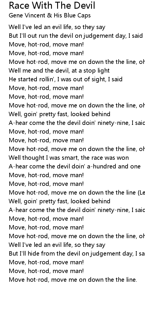 Move hot-rod, move me on down the the line. |