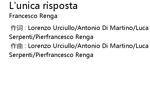 | [00:00.000] | zuò qǔ : Lorenzo Urciullo Antonio Di Martino Luca Serpenti Pierfrancesco Renga |