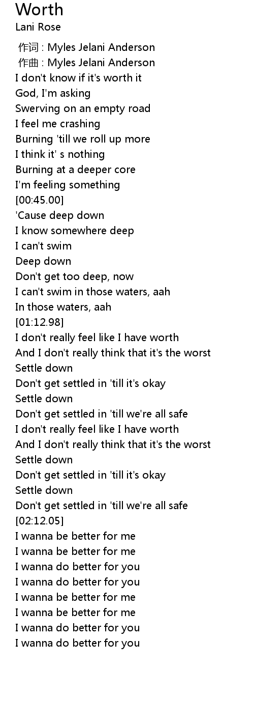 | [00:00.000] | 作词 : Myles Jelani Anderson |
