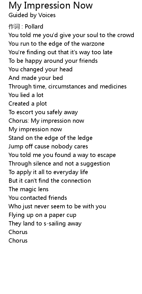 | Chorus: My impression now | |