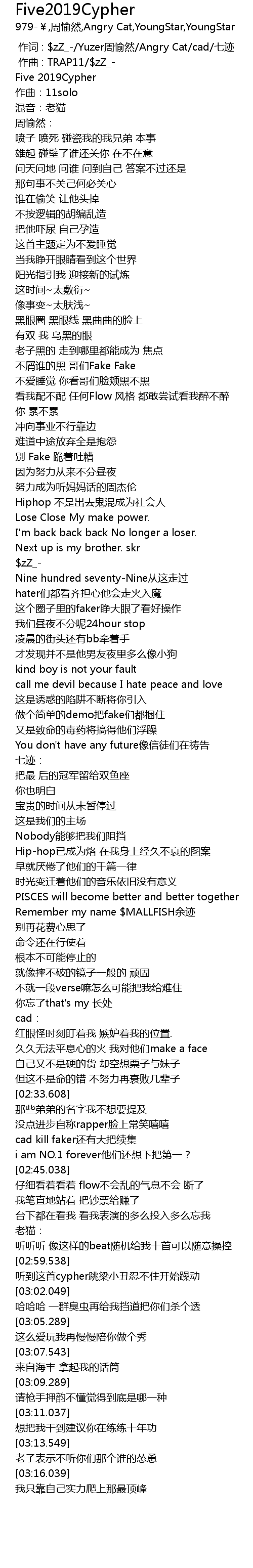 | [02:59.788] | 听到这首cypher跳梁小丑忍不住开始躁动 |