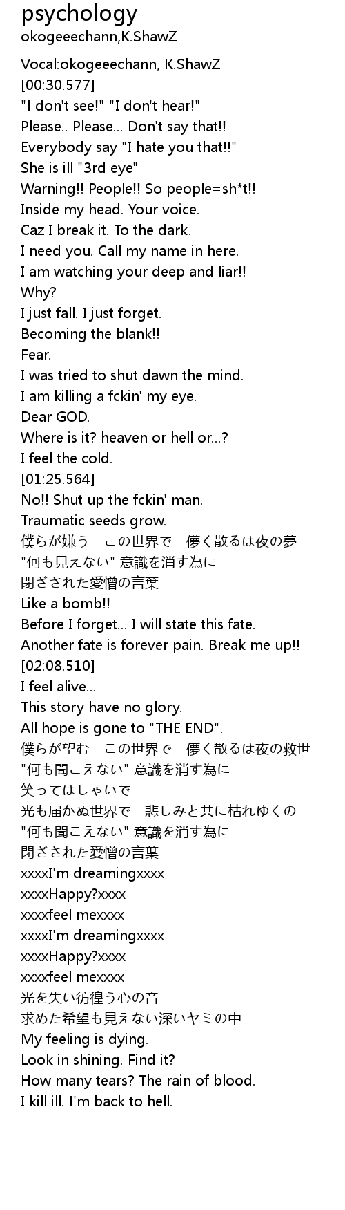 | [00:23.785] | Vocal:okogeeechann, K.ShawZ |