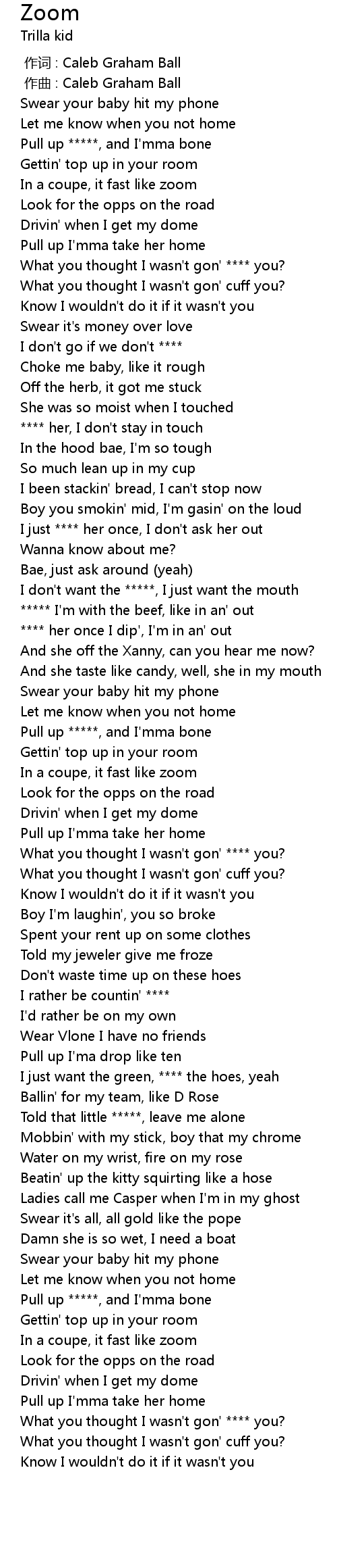 | [01:38.93] | Pull up *****, and I'mma bone |