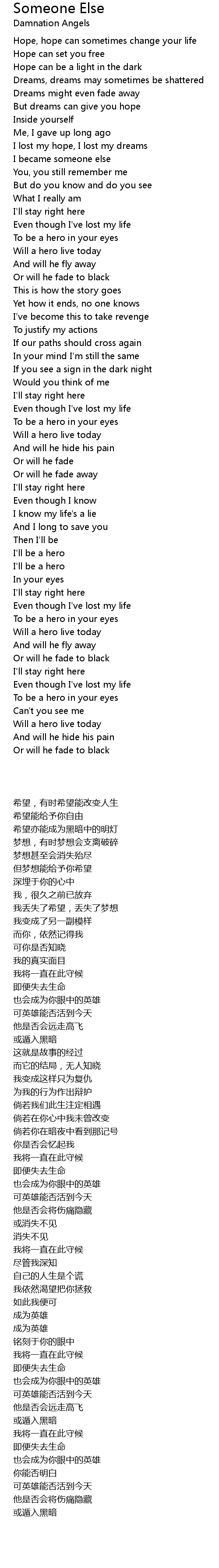 I lost my hope, I lost my dreams |