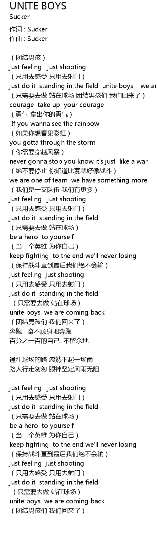 | (只需要去做 站在球场 团结男孩们 我们回来了) | |