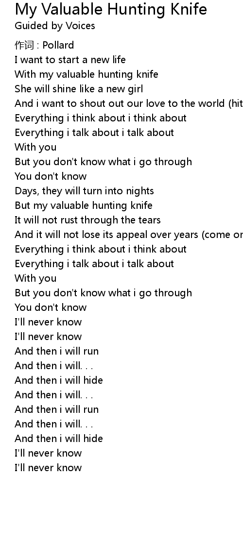 | Song | My Valuable Hunting Knife |