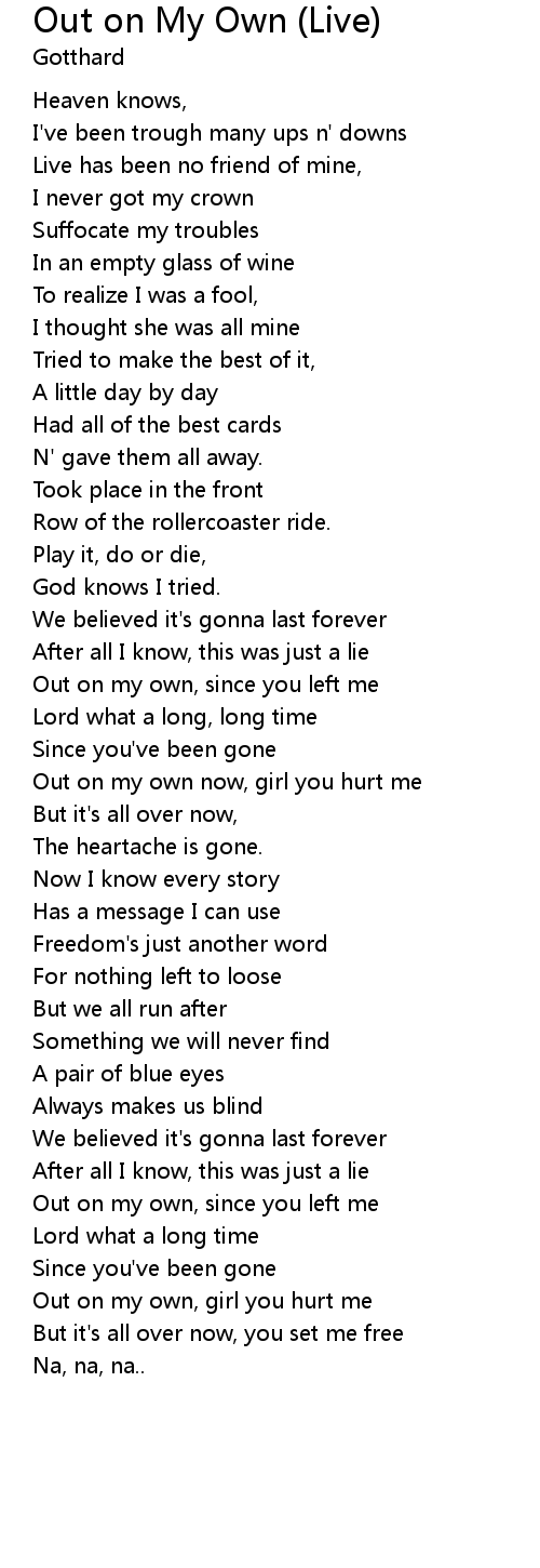 | Out on my own, since you left me | |