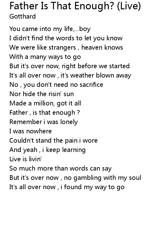 | Father , is that enough ? | |