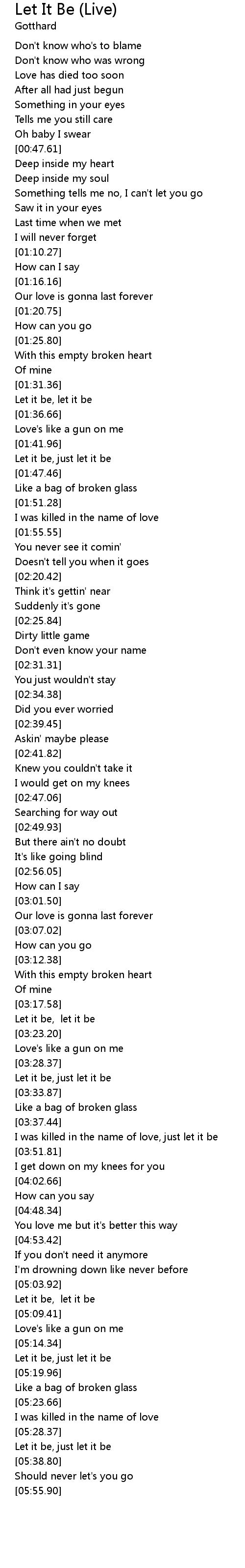 | [03:38.23] | I was killed in the name of love, just let it be |