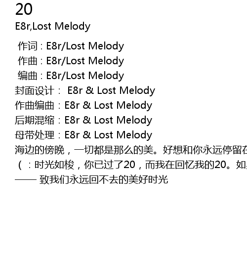 | [00:01.000] | 作曲 : E8r/Lost Melody |