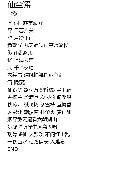 | [02:24.500] | 千秋山水 仙路情长 人难忘 |
