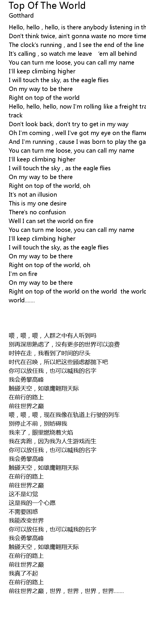 | [03:13.90] | Right on top of the world on the world the world the world the world....... |