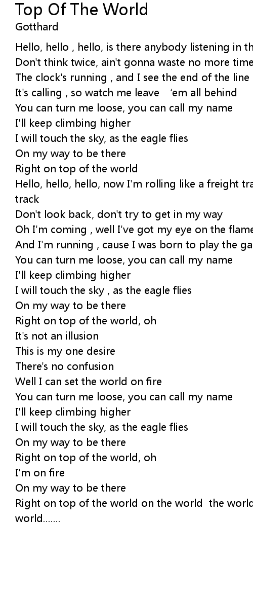 | [03:13.90] | Right on top of the world on the world the world the world the world....... |