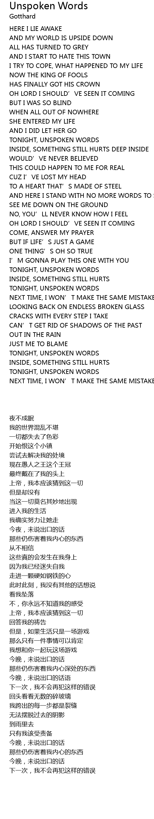 | Song | Unspoken Words |