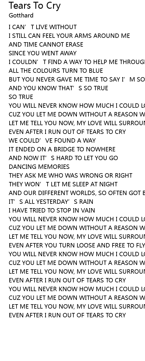 | [01:12.24] | EVEN AFTER I RUN OUT OF TEARS TO CRY |
