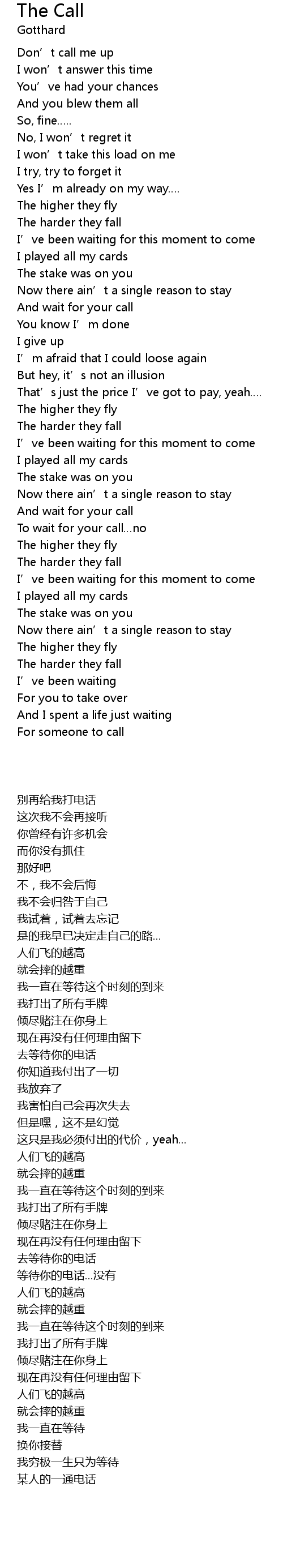 | [02:25.55] | And wait for your call |