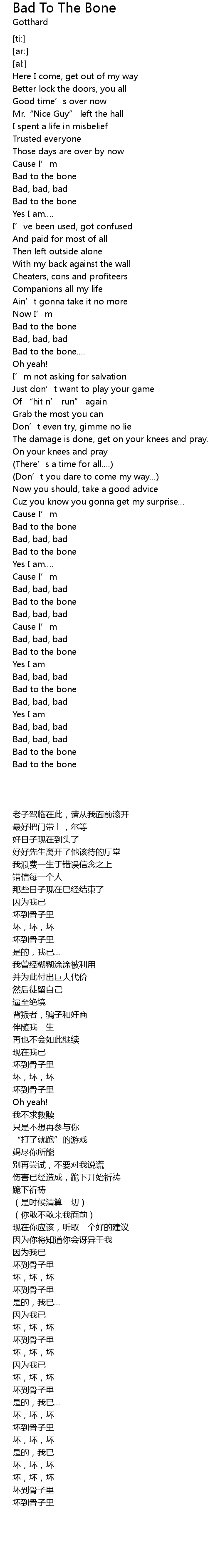 | [03:21.71] | Bad to the bone |