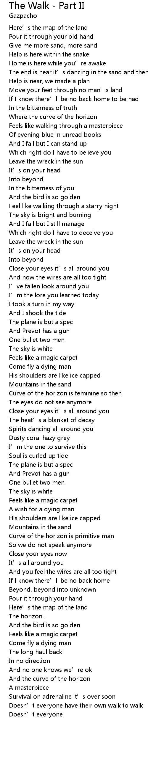 The Walk - Part II Lyrics