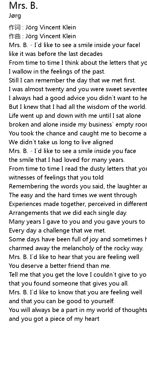 | Mrs. B. I`d like to hear that you are feeling well | |