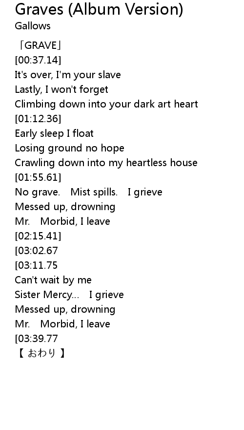 | [03:40.85][03:02.67] | No grave. Mist spills. I grieve |