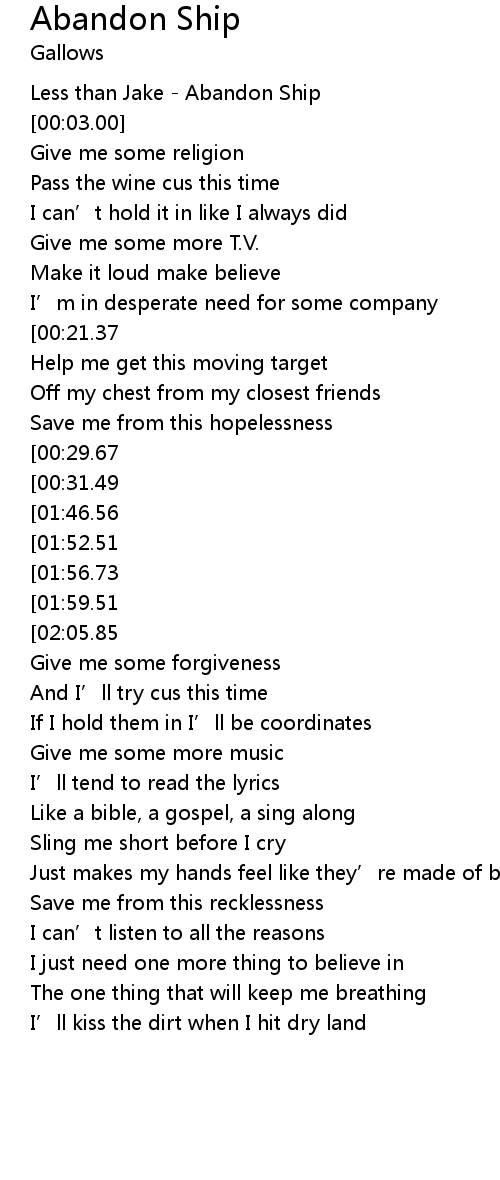 | [00:02.00] | Less than Jake - Abandon Ship |