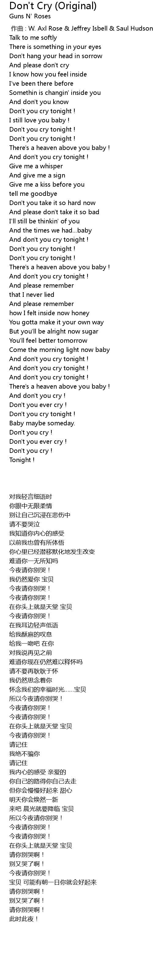| [00:49.920] | Don' t you cry tonight ! |
