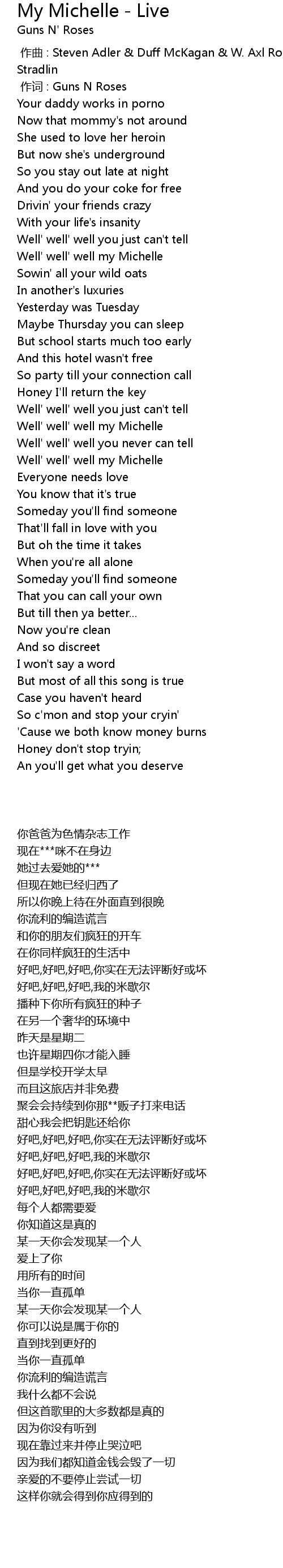 | [00:00.00] | zuò qǔ : Steven Adler Duff McKagan W. Axl Rose Slash Izzy Stradlin |