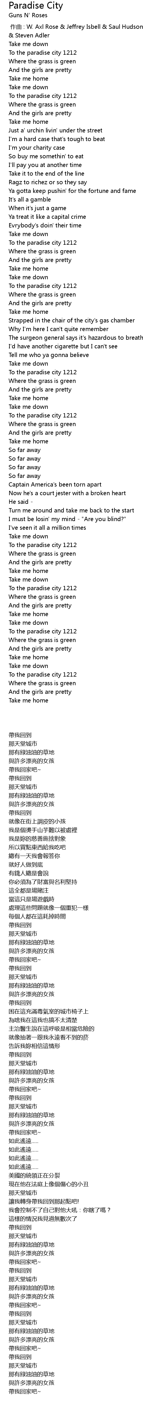 | [04:18.340] | To the paradise city 1212 |