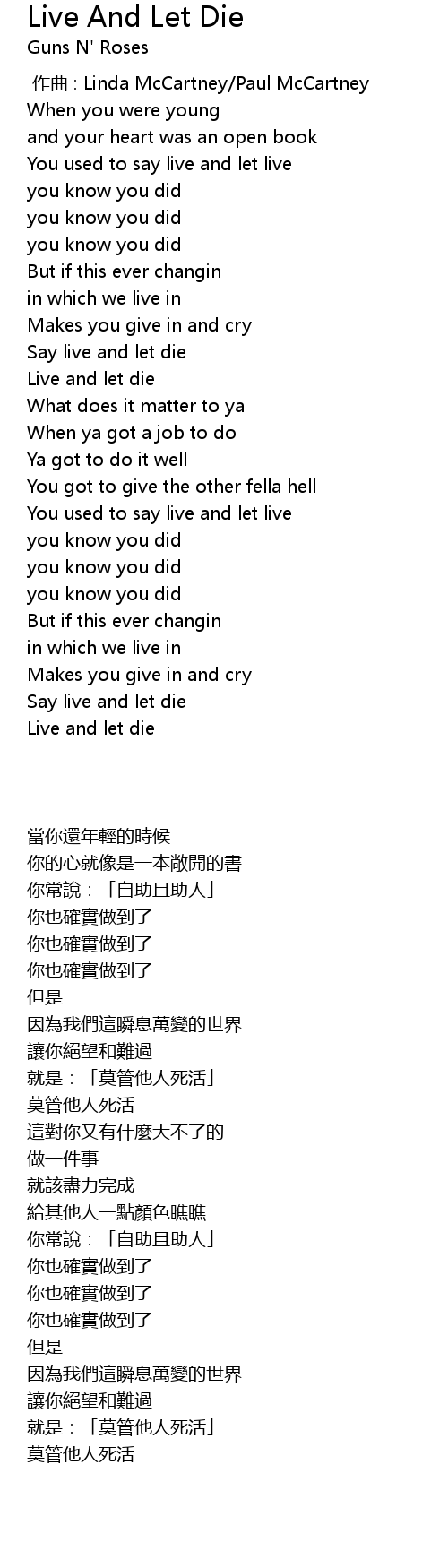 | [02:21.00] | Live and let die |