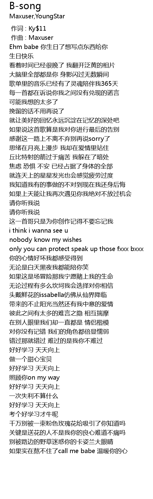| [00:13.896] | Ehm babe 你生日了想写点东西给你 |