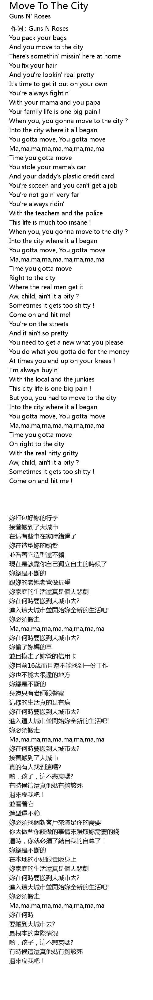 | [00:00.00] | 作词 : Guns N Roses |