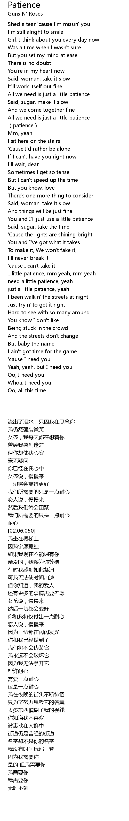 | [04:45.830] | need a little patience, yeah |
