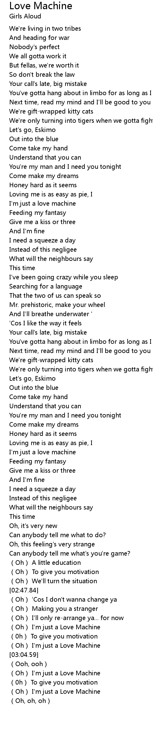 | [03:06.81] | (Oh) I'm just a Love Machine |