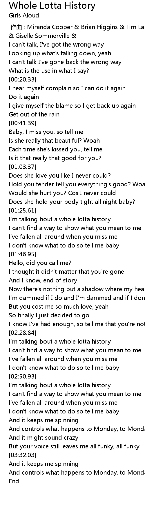| [02:29.84] | I'm talking bout a whole lotta history |