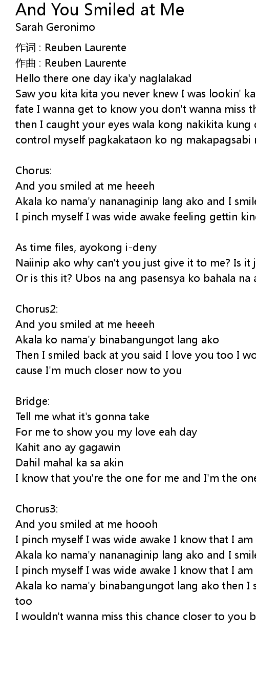 | Akala ko nama' y nananaginip lang ako and I smiled back at you hoooh | |