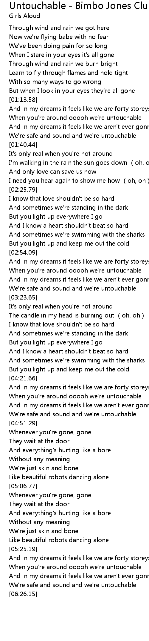| [01:21.18] | When you're around ooooh we're untouchable |