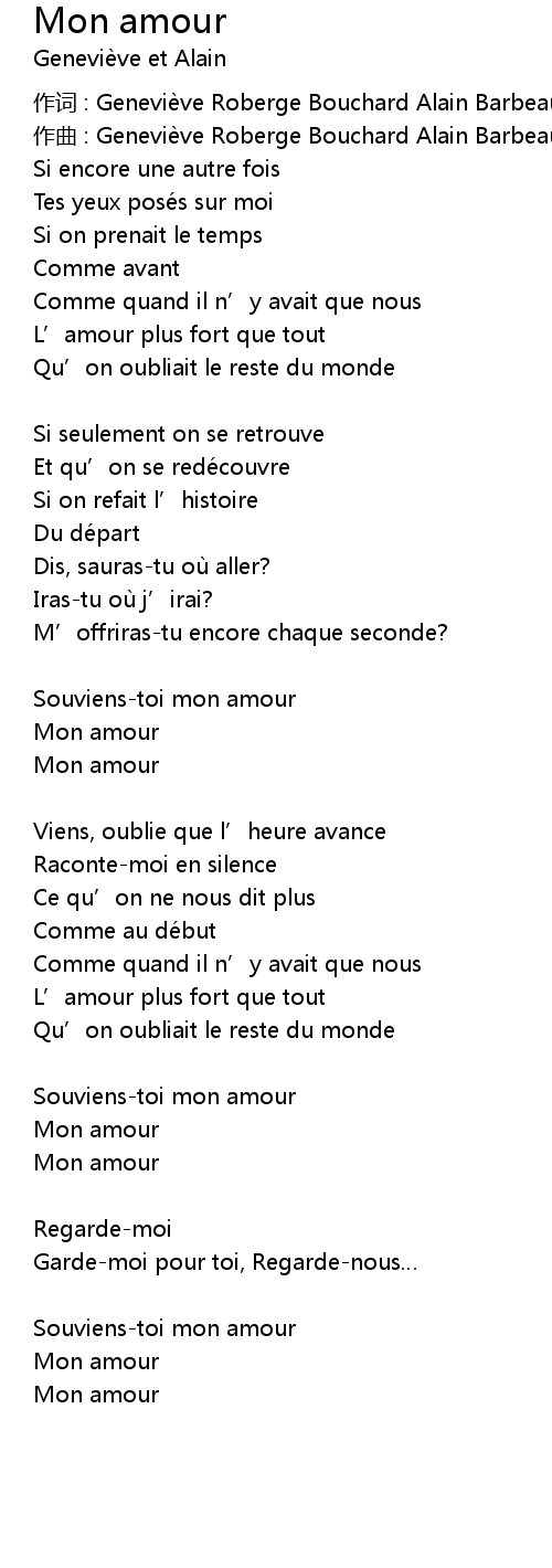 | 作词 : Geneviève Roberge Bouchard Alain Barbeau | |