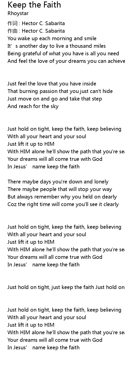 | Just hold on tight, keep the faith, keep believing | |