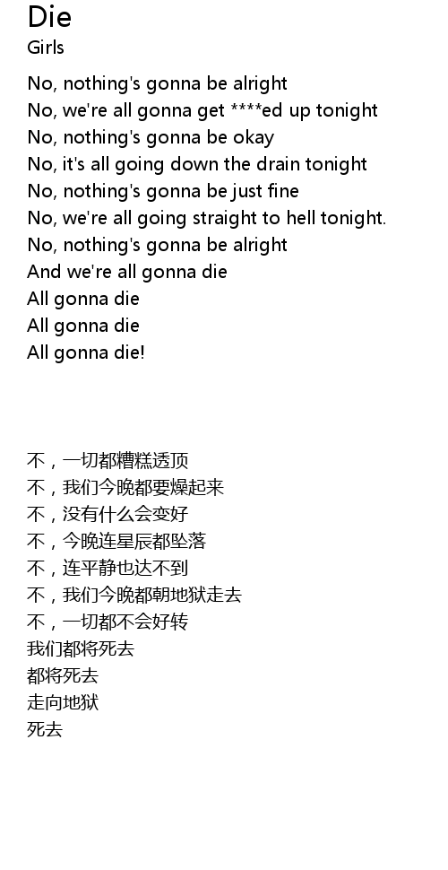 | [01:34.39] | No, we're all gonna get ****ed up tonight |