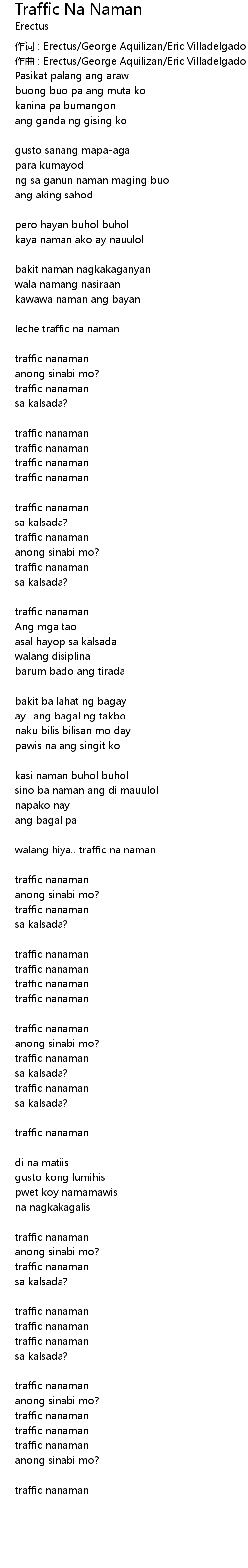 | 作词 : Erectus/George Aquilizan/Eric Villadelgado | |