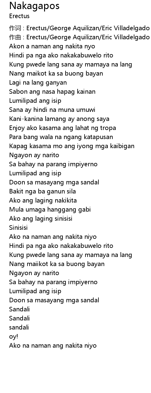 | 作词 : Erectus/George Aquilizan/Eric Villadelgado | |